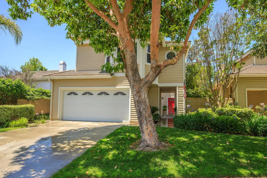 Welcome to this gorgeous 4 bedroom, 2.5 bathroom, 2284 sqft home in desirable South Moorpark! Great location adjacent to Mountain Meadows park. Upgrades galore including new front door, dark hardwood floors, updated windows, marble fireplace mantle, and OWNED solar panels! Downstairs boasts a light and bright formal living & dining room with French doors to the backyard and a nicely updated powder bath tucked under the stairs. Eat in kitchen is completely remodeled with granite counters, stainless steel appliances, breakfast bar, and custom cabinets. Adjacent family room has hardwood floors, access to the garage, and a slider to the backyard. Double door entry at the top of the stairs to a master suite with large windows and plantation shutters. Master bath has dual vanities, soaking tub, shower, and a walk in closet. 3 nice sized secondary bedrooms with closets, carpet, and one with bamboo flooring. Remodeled hall bath has beautiful vanity and walk in shower. The gorgeous and private backyard will make you feel as if you were transported to a tranquil retreat. Enjoy sitting under the covered patio listening to the waterfall in the Koi pond while gazing into the tropical landscaping. You'll never want to leave! Welcome home!