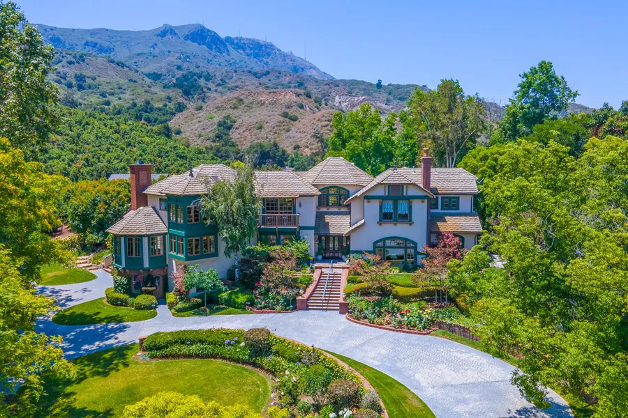 Extraordinary Santa Paula estate resting on over 6 sprawling acres with sweeping mountain views and private orchard. Inspired by traditional French Country architecture, every detail in this custom property was thoughtfully designed and built with no expense spared. Situated behind a private gate and picturesque gardens, the main residence features over 6,700sf of living space, and 5 large bedrooms each with their own ensuite bath. Natural light pours in from the abundant leaded glass windows, where youre welcomed by vaulted ceilings, hardwood floors, and stunning hand-crafted custom wood paneling throughout. The main level offers a formal library with coffered ceilings, billiard room, custom pub-style bar, four fireplaces, and temperature controlled wine cellar with 2300+ bottle capacity. Gourmet kitchen complete with custom cabinetry, Sub-Zero fridge/freezer, Wolf 6-burner gas range, d...
