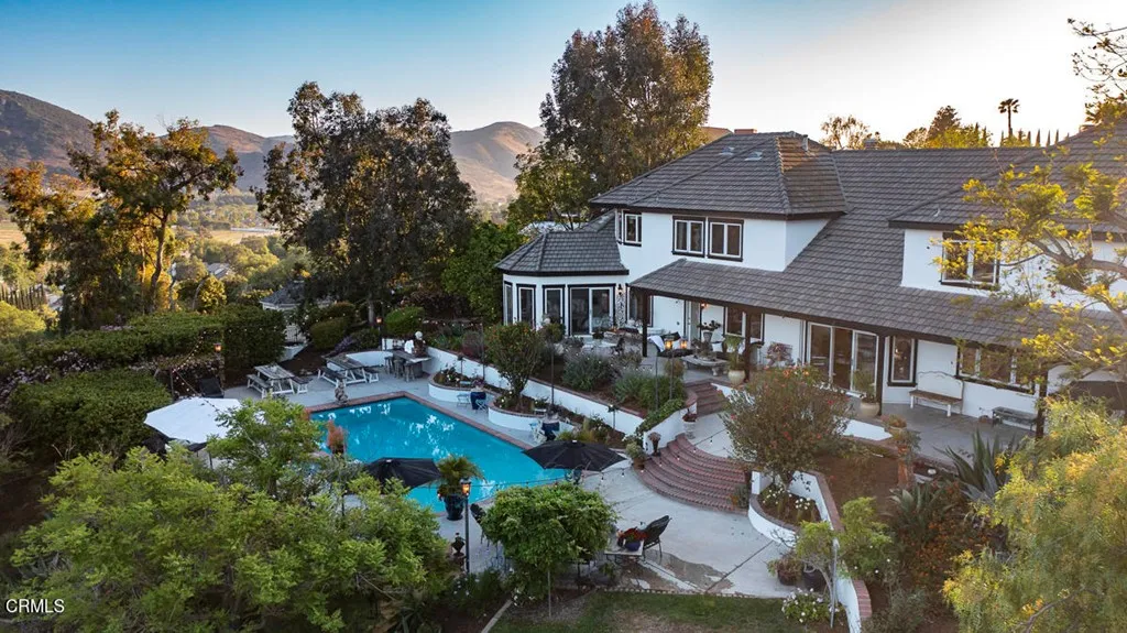 Views! Views! Stunning view estate on a gorgeous pinnacle view lot! Magnificently detailed home offering the best of Santa Rosa Valley. Drive up to a beautiful private oasis. Situated on 1.1 lush acres and never ending views. Over $150,000+ in upgrades including all 6 Bathrooms, New Carpeting, Kitchen Update, Original wood floors completely refinished and sealed to new in the Living, Dining, Kitchen and Morning Rooms. Office has an an amazing new floor. Exterior and Interior freshly painted. Newer A/C, Heaters, Hot Water Heater and Pool Equipment. This home Boosts 6 bedrooms, 5.5 Bathrooms, Office w/ built ins, Living, Dining, Indoor Storage Room, Large Light and Bright Morning, an oversized wood beamed family room. And views from every room in the house. The backyard is an entertainers paradise. Sitting patio for quaint entertaining, a huge 2 level pool and patio followed by a level gra...