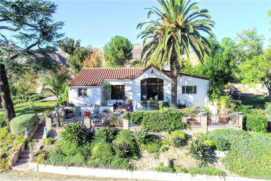 Incredible opportunity for a builder or investor. It's also perfect as a secluded family compound, also horse property. First time on the market you will not find anything like this anywhere. Private 1,845 SqFt home with almost 5 1/2 acres of gently sloping hills and flat pads and possible ADU ready White stucco with gorgeous spanish tile roof outline this single story home. High quality carpeting throughout the home with 3 bedrooms, and 2 bathrooms, upgraded throughout including crown molding in all the rooms. Living room is charming & welcoming with a dome ceiling and picture window with fantastic views of the valley. Kitchen is light and bright, with beautiful quartz counters & tile backsplash, cabinets are soft closing with pullouts, & a butler's pantry and extra pantry off the breakfast nook. Laundry room inside. Views surround the home with some double paned windows giving the home...