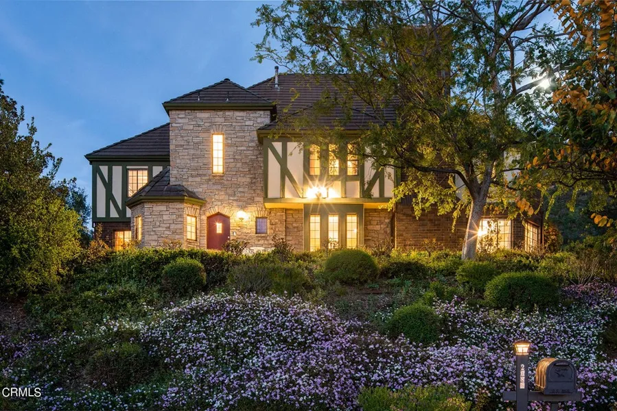 European Elegance comes to Lynn Ranch, custom estate situated majestically at the top of a quiet cul-de-sac, basking in unobstructed panoramic views. Almost 2/3 of an acre backing to open space, the main residence features four large bedrooms, a dedicated downstairs office, 4 bathrooms and a rare five car garage with electric vehicle hookups and RV parking. Relax & entertain in luxury at this extraordinary property. A spacious gourmet kitchen incorporates natural quartz countertops, an expansive island, Sub Zero refrigerator, six burner Dacor range with commercial vent, and breakfast area overlooking a rose garden. Enjoy the stunning views from the lovely master suite with attached sitting room, fireplace, and luxurious bathroom with custom stonework and travertine flooring. The private subterranean guest quarters offer many options with a separate entrance, two bedrooms, kitchenette, and bathroom. The residence also features a large wine cellar tasting room, expansive game room, craft room, and a bonus/media room, which had been used as an in-home gym. The finished attic has a multitude of options. Counting the attic and full basement there is over 7,000 square feet under roof. Epic park-like grounds with lush landscaping, massive 60-foot water slide cascading into magnificent huge 20 x 40 pool with huge separate spa, and multiple outdoor dining areas which make this home perfect for entertaining. This home is perfect for a large family or anyone that would enjoy entertaining in this spectacular private Lynn Ranch estate. Privacy abounds inside & out. True character through and through! Award winning Conejo Schools.