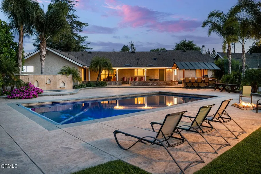 Welcome to this quality custom-built single-story home featuring 6 bedrooms, 3.5 bathrooms. This is the perfect home for someone who is looking for a peaceful rural country setting or extra space in Beautiful Somis just outside the city. Situated on 1 flat usable acre with Pool, Spa and Tennis Court, an oversized 3 car garage, circular driveway for plenty of parking and an orchard with various fruit trees. Beautifully remodeled kitchen has stainless steel appliances, custom Alder Wood cabinets and an eat-in dining area for family gatherings. The formal dining room opens to the spacious living room with fireplace. Master bedroom has a master bathroom with sink and a make-up vanity and 2 closets (1 walk-in). The large family room has a fireplace, landscaped backyard with two patios great for entertaining. Two Gazebos, one with a waterfall feature and wood burning fireplace, the other off t...
