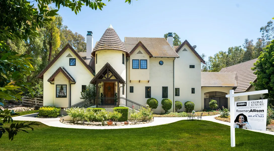 Located in the prestigious gated Hidden Meadows Estates, this Traditional European French Normandy Estate was originally designed utilizing the plans from a castle in the Normandy province in the Loire Valley of France. The home offers impeccable craftsmanship and quality, highlighted by uncompromising extraordinary finishes. Located on over 2.3 acres at the east end of the Santa Rosa Valley, set on a premier lot allowing for seclusion and privacy. Rivaling any 5-star resort, featuring 3 secondary bedroom suites upstairs, each with their own baths and separate alcove room. The master bedroom with gleaming wood like flooring has romantic fireplace, and luxurious master bath with tumbled travertine, double sinks, separate shower, and jetted tub. Downstairs the elegant details include extensive gleaming wood flooring, a gourmet chef's kitchen with fireplace, butcher block center island, newer commercial range, double oven, built-in microwave, and eat-in kitchen area with turret style exposed circular wood beam ceiling. From the spectacular kitchen you go through Butler's Pantry to large formal dining room. Formal living room and huge family room with fireplace, and a separate dedicated office which could be converted into a downstairs bedroom. Indoor laundry room with sink. Newer HVAC system and water heaters. Resort styled rear yard boasts multiple entertainment areas with an oversized pool with new heater, spa, outdoor kitchen loggia patio area with built-in Viking barbecue, Viking heating drawers, Fire Magic burner, Lynx Pro Sear adjustable burner, refrigerator, and pizza oven. Near the spa, there is an additional patio seating area with a fireplace for evening enjoyment. Above the pool area, to take advantage of the pastoral serenity, there is an additional level of covered patio space for joyful views and relaxation. In addition to the features of the main home, there are additional guest quarters with over 900 square feet, located above the garage attached by covered breezeway to the main home with bath and kitchenette area, or the space could be easily converted into a dedicated theater room/office/gym, the options are endless. Extraordinary finishes throughout this home blending the ultimate in entertaining, relaxation and recreational amenities. Reduced electrical costs due Solar Lease on property. Horse Zones in wonderful equestrian community with community arena. Highly rated Award winning Santa Rosa Technology Magnet school.