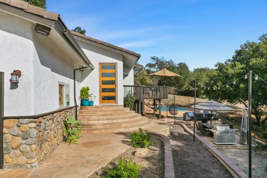 Welcome to your dream property nestled in the picturesque Ojai Valley! This stunning 4-bedroom, 2.5-bathroom retreat offers the perfect blend of tranquility and peace on a sprawling 1.74-acre parcel. As you drive up the gated driveway, a sense of exclusivity embraces you, promising a haven of privacy and comfort. Step inside, and you're greeted by an inviting open floor plan that effortlessly flows from room to room. Sunlight dances through the windows, highlighting the connection between indoor and outdoor spaces. This exquisite home features a captivating great room with an open-concept design, seamlessly integrating the dining, kitchen, and living areas, crowned by high ceilings and a cozy fireplace that invites warmth and sophistication into every gathering. With four bedrooms, including a primary suite, this home ensures everyone has their own space. A crystal-clear pool awaits, inviting you to take a refreshing dip on warm Ojai afternoons. Unwind in the spa, or bask in the California sun on the expansive flagstone patio. Nature enthusiasts will delight in the 1.74 acres of pure bliss, adorned with majestic oak trees that provide shade and a sense of tranquility. A small orchard adds a touch of countryside charm, and the nearby hiking trails promise endless adventures for those who crave the great outdoors. And for those with equestrian passions, this property is a dream come true. Convenience meets luxury as this prime spot is strategically located just 15 minutes from the beach. Imagine the ease of enjoying the sun-kissed shores whenever the mood strikes. Whether you're a beach lover or a mountain explorer, this home's prime location caters to every lifestyle!