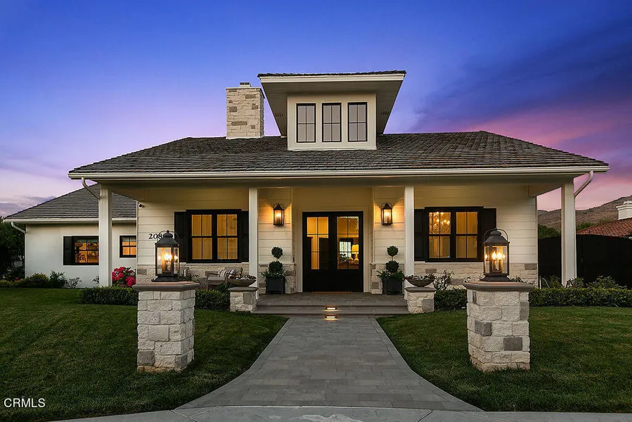 Conceived of the drama & the romance of Southern California's best, this sprawling single level home is located on over one acre in Camelot gated neighborhood of Santa Rosa Valley. Comprised of five spacious bedrooms, all adjacent to full & upgraded baths, plus a powder bath. Distinguished architectural bearing & the use of enduring wide plank French plank wood flooring throughout most of the rooms provides timeless elegance and style. Remodeled gourmet island kitchen w/ Subzero refrigerator/freezer, Viking Freestanding range with double ovens, stainless appliances, quartz kitchen counters & backsplash; walk-in pantry, farmhouse sink w/new fixtures. Large welcoming family room off kitchen area has volume ceilings, fireplace. The formal dining room is stunning with wainscoting and extra-large crystal chandelier. This architectural masterpiece offers extraordinary artisanship, & a stylisti...