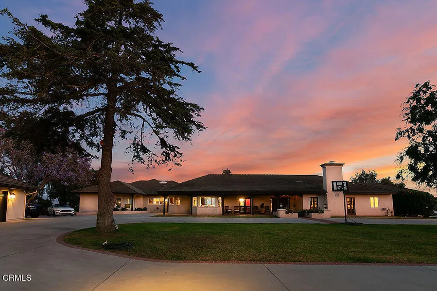 Nestled in the Camarillo Foothills near Spanish Hills Country Club facing the Pacific Ocean is the most extraordinary one story estate in all of Ventura County. Mere words cannot describe this breath-taking location. Located on over 7 acres, enter through a gated entry to a large private compound. 180 degree panoramic views spanning from the Conejo Mountains to Point Mugu State Park to the Pacific Ocean, including the striking views of the Channel Islands. Jet setters will appreciate the close proximity to the private Camarillo Airport which can be seen from the property just minutes away. This is one of the finest estate lots in Ventura County. Family room with fireplace, kitchen with decorator range, two large ovens, dishwasher, built in refrigerator, 2 work stations with sinks & built in desk. Office/den with wood floors & bathroom. Remodeled Master bedroom features fireplace, walk-in closet with organizers & master bath with jacuzzi style tub, separate shower & double sinks. There are two massive secondary bedrooms with a huge shared bathroom with crown molding, walk-in closets, large bathroom on the east end of the home. On the west end there is another massive bedroom with it's own remodeled bath designed to be an in-laws quarters. Entertainer's yard with Pergola covered patio, built-in bar-b-que, refrigerator, fire-pit, huge pool, spa, large grass area for playing & views. 5 car garage plus huge RV garage that can hold 2 RVS. Equestrian facilities including shed row barn, and riding arena. Lime orchard, fruit trees and more. Come fall in love.
