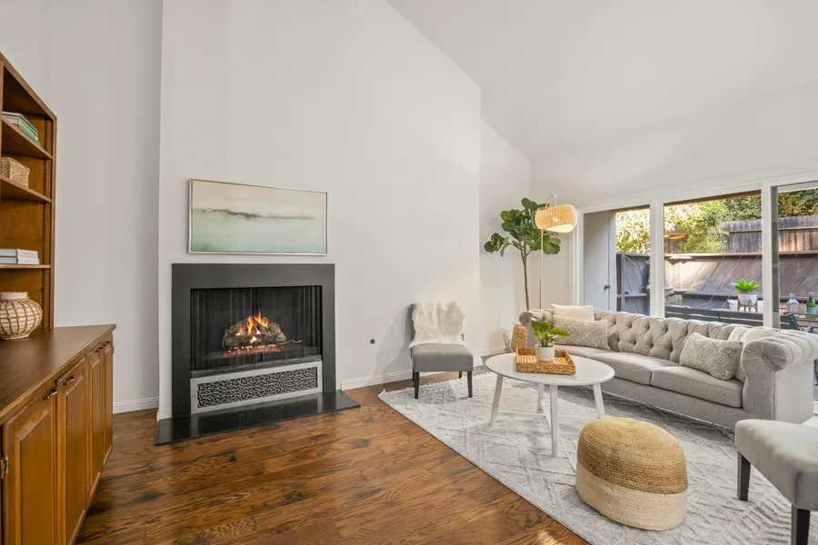 Tucked away within a serene and wooded area of Ojai, sits this beautifully remodeled townhouse with vaulted ceilings, hardwood floors, custom cabinets, and sophisticated stone countertops. Natural light flows into the living room through elegant sliding doors, illuminating an open floorplan graced by a marble fireplace. An indoor-outdoor lifestyle is perfectly supported with a fenced and tiled patio adjacent to the kitchen and a rare downstairs bedroom and bath is optimal for guests, a caretaker or working from home. Upstairs you will find two additional bedrooms and a bath with wonderful views, a walk-in closet and bonus storage space. Enjoy swimming laps or just relaxing in the newly renovated pool and spa, while someone else takes care of the landscaping. Impeccably maintained, this home includes a newer roof, upgraded windows, a two-car garage with extra storage and an HOA that includes water, trash, and external insurance. Close to the bike path and all downtown Ojai has to offer, let’s make this beautiful property your home for the holidays!