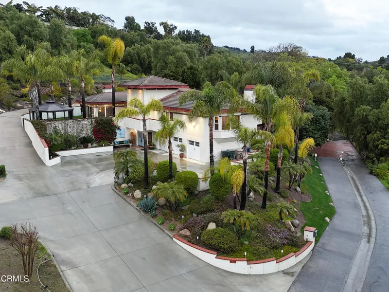 For those buyers looking for a one story home - take another look at this property! The main rooms including kitchen, living room and three of the four bedrooms that are ensuite are all on the upper level! Exceptional modern residence showcasing spectacular views. Situated on a hillside, this private contemporary home features an open concept floor plan with 4 en-suited bedrooms, 4.5 baths, a spacious and luxe living room with a brick fireplace, vaulted ceilings, and expansive glass doors that offer panoramic vistas, seamlessly connecting the indoors with the outdoors on the spacious patio.The gourmet kitchen is fully integrated with high-end appliances, exquisite cabinetry, and granite counters. The primary suite enjoys large windows framing picturesque panoramic views, an ensuite bath, and walk-in closet There are two secondary bedrooms on the north side of the residence each enjoying their own adjoining bath. Downstairs there is the 4th bedroom with wood armoire closet adjoining it's private bath. Huge laundry room. Coffered ceilings and walk in wet bar. With an abundance of natural light, sleek design, and elegant interiors, this residence emanates a warm and inviting ambiance, while effortlessly blending comfort and sophistication. Spacious, easy maintenance backyard with storage shed, electric spa and covered gazebo area. Tankless water heater and newer HVAC system. Three car garage with extra depth and storage cabinetry. Located in the sought after Santa Rosa Valley with the highly rated SRTMS technology magnet school.