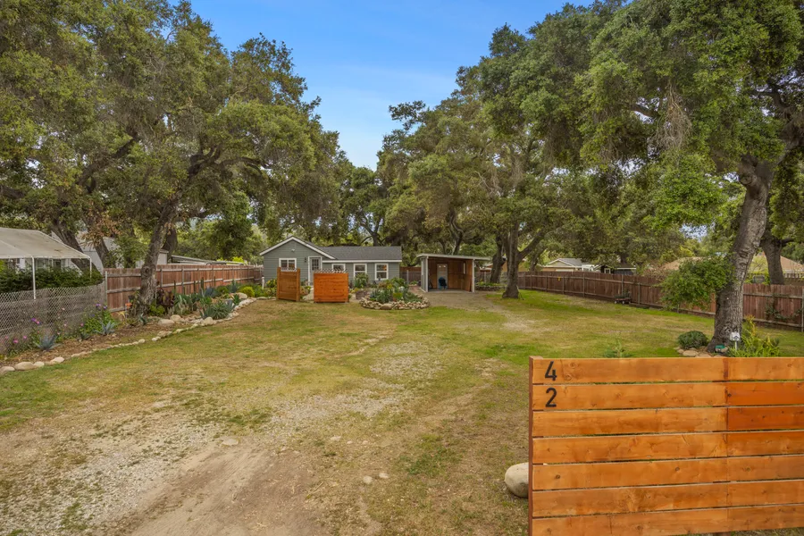 Nestled within the quaint Oak View community, 42 Rockaway Drive presents a delightful fusion of rustic charm and modern living. This inviting 1 bedroom, 1 bathroom home sits on a substantial 13,600 sqft lot, cradled by the grandeur of 6 mature oak trees that whisper the history of the land.The property greets you with a spacious brick-laid patio area, perfect for al fresco dining and enjoying the mild California climate. The outdoor space is a harmonious blend of hardscape and landscape, with gravel paths meandering through drought-tolerant gardens, leading to cozy nooks where one can revel in the beauty of nature or delve into a good book.Indoors, you are welcomed by a bright and airy living space where natural light spills across wood-like flooring, highlighting a tasteful color palette. The living room seamlessly integrates with the outdoors through sliding doors, ensuring that the beauty of the surroundings is never out of sight.Situated just moments from the artistic spirit of Ojai, the serene beaches of Ventura, and the upscale allure of Santa Barbara, this home is an embodiment of the sought-after Southern California lifestyle -- a serene getaway with proximity to urban centers and natural retreats alike.In this humble abode, you're not just buying a property; you're acquiring a canvas of experiences, a place where every inch is infused with the potential for memories to be cherished forever.