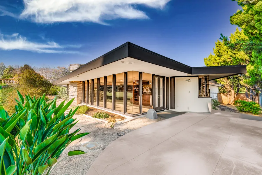 Experience the timeless appeal of Mid-Century Modern design in this unique Ventura County property, overlooking the 13th hole of Saticoy Golf Club. Originally designed by Richard Martinez and influenced by the architectural principles of Frank Lloyd Wright, this home has been lovingly restored. The restoration emphasizes the home's historical integrity while adding contemporary upgrades, such as imported French limestone floors and custom designed tiles. With floor-to-ceiling windows, a classic stone fireplace, and an iconic Astra Sputnik Satellite chandelier, the 3-bedroom, 2.5-bath home spans 3,184 square feet. Located in a gated and serene cul-de-sac, this 0.66-acre property is an ideal retreat for golf enthusiasts and design lovers alike.