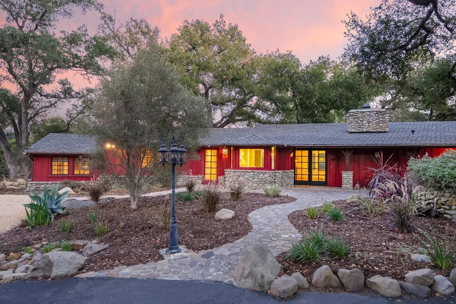Nestled in one of Ojai's most premiere areas, this remarkable property spans over 1.2 acres and boasts sweeping views of Topa Topa Mountain and Chief Peak. Move-in ready and full of charm, the main home features wood floors throughout and a grand living room with a river rock fireplace, a picture window framing mountain vistas, and a pitched ceiling with exposed wood beams.The kitchen blends vintage charm with modern functionality, featuring an O'Keefe & Merritt stove, built-in Bosch oven, and a breakfast bar for casual meals. The formal dining room opens directly onto two patios, creating the perfect ambiance for outdoor dining under the stars.Retreat to the primary suite with a cedar-lined closet and an en suite bathroom, while two additional bedrooms, each with private bathrooms, offer comfort and convenience. A dedicated home office with a private entrance, along with a well-equipped...