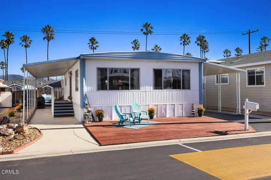 A well loved home on a large lot with no backyard neighbor. Come live near the beach and harbor, walk to the brand new Portside or to Ventura Harbor for dinner and entertainment. Home welcomes with spacious and bright living room, a cozy dining area and galley kitchen. Lots of storage and pantry space. Main en-suite bedroom with walk-in closet and bath with walk in shower. Second bedroom is HUGE and also has a walk in closet. The hall bath has a walk in bath/shower combination. An exterior laundry closet. Large Patio area by front door. And, don't miss the huge side and back yards. Lots of room for relaxing, entertaining and gardening. Two huge sheds. No back neighbors and unit is in the back of this gorgeous and quiet park lined with beautiful palm trees. (looks like there is also enough room for a triple wide for future plans... would have to check with the park manager/owner) Please c...