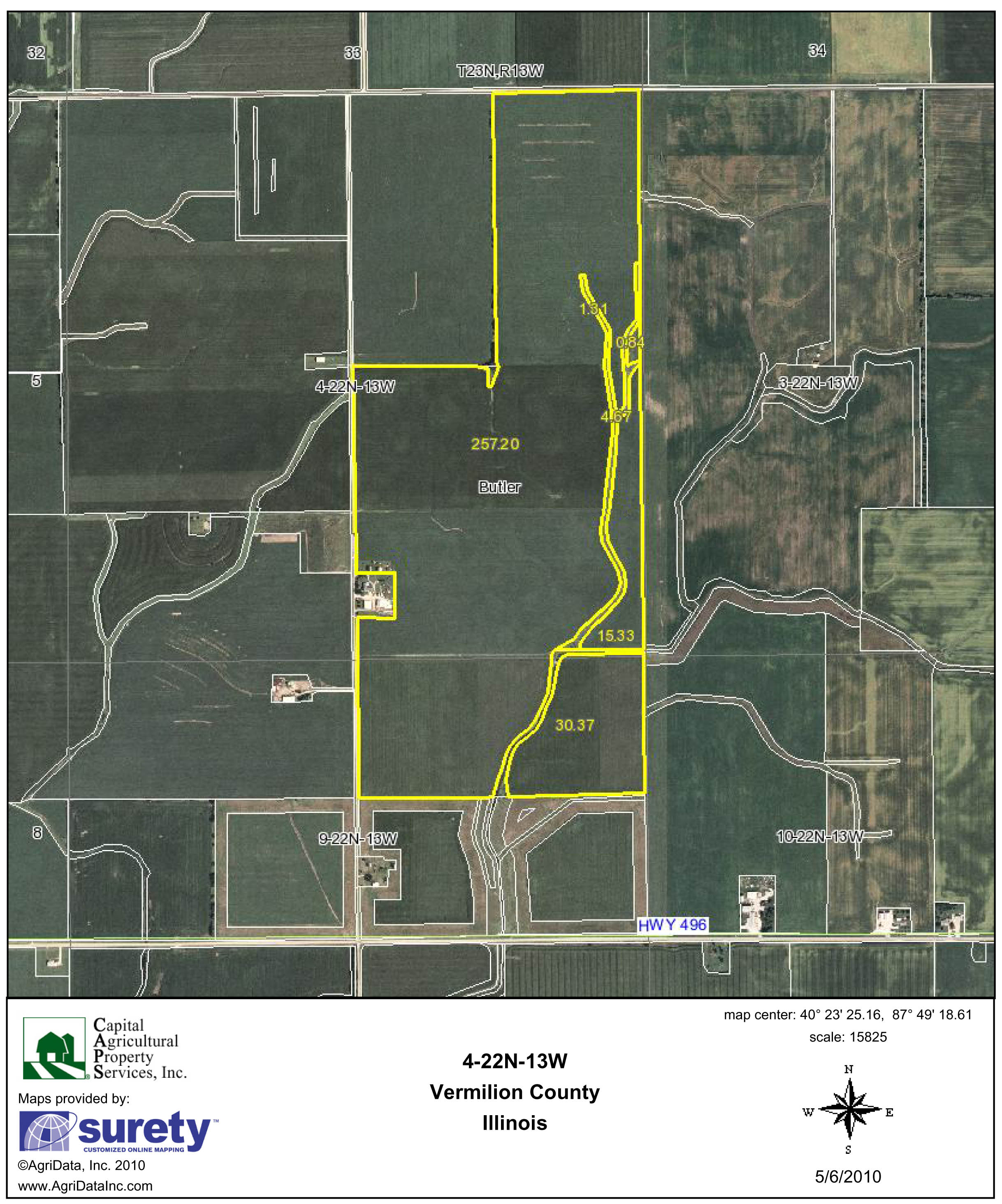 Research Parcel InformationApproximately 8 miles south of Ranklin, with road frontage along CRs 620 E and 3700 N, part of Sections 4 and 9, Butler Township 22N, R13W, Vermilion County, Illinois.