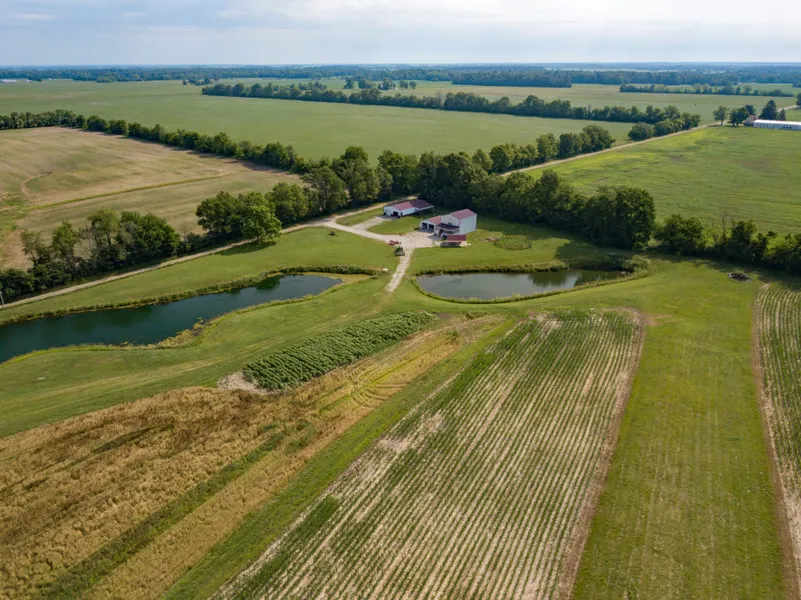 86.94 acres in Vermilion county on the state line of Illinois and Indiana. This is the one you've been looking for! The 2 story home overlooks your own private pond. Nice size pond stocked with Bass, crappi, bluegill, catfish and a floating dock. Windmill placed a couple years ago being used as an aeration system to the pond. The two bedroom one bathroom home was built two years ago as a getaway place. Home is fully furnished. He will be leaving the furniture and the appliances. This property has 41.3 acres of woods and 45.64 acres in CRP. CRP income is $5112 per year. Property has been surveyed. Owner has done many improvements to this property. This is a turnkey property and ready to hunt with stands all set up. There are 3 ladder stands, 4 box stands and several hanging tree stands. Pictures of the trophy deer that have been harvested on this property are in photos. Property has turke...