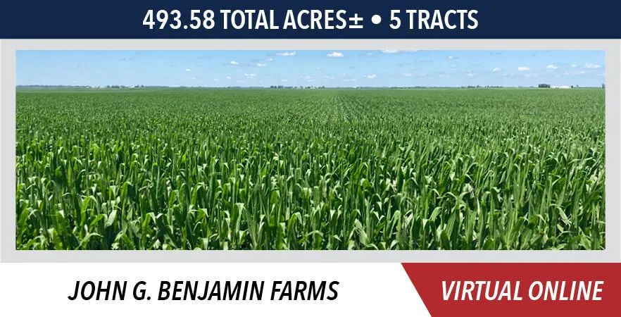 The John G. Benjamin farms are located approximately 4 miles east of Hoopeston, IL, or approximately 26 miles north of Danville, IL. The land is further described as being located in Sections 2, 8, 11 & 23, T23N-R11W, Grant Township, Vermilion County, IL.