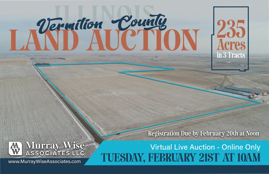 All bidders are required to register on Murray Wise Associates website on or before Noon CDT on Monday, February 20, 2023. Once the online registration form is filled out it will be automatically sent to Murray Wise Associates for approval to allow bidding. Auction company may request a letter of recommendation from prospective bidders financial institution stating funds are available for the 10% deposit and that bidder has the financial capacity for final purchase.