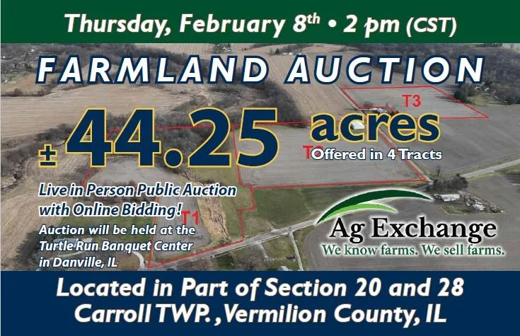 Part of section 20, T17N-R12W, Carroll Twp, Vermilion County, IL. Assessor PIN# 32-20-202-004 and part of 32-20-202-017.