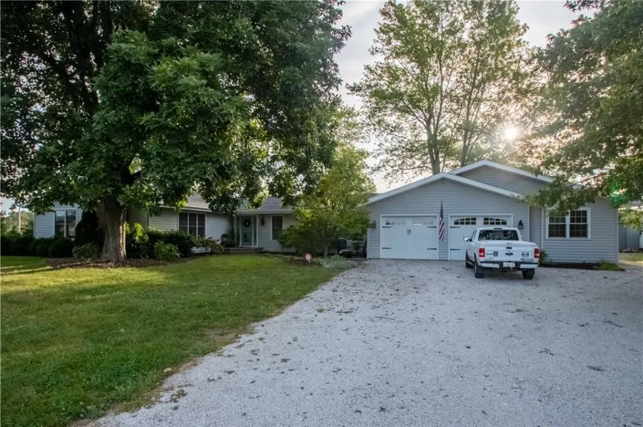 This country-casual home features 4 beds, 2 remodeled baths, and a huge family room plus living room w/ a wood stove, set in the Bismarck school district. With just under 3,000 square feet set on 2 acres, this serene retreat is surrounded by fields & woods. The kitchen has been remodeled w/ Amish-crafted hickory cabinets, Corian countertops, and stainless steel appliances. Off the kitchen is a rustic, heated 4-season room w/ skylights. The owners suite leads to an attached flex room that would be perfect for work from home or if in need of nursery. The 2-car attached garage is oversized & also has a segmented 12x22 shop. Off the 4-season room is an attractive paver patio leading to the 2.5-car detached garage. Hobbyists, small business owners, & homesteaders alike will appreciate the possibilities of the pole barn with concrete floor and rear addition that measures a total of 74x30. Newer roofs on the house and detached garage in 2024, newer (5 year approx.) well, and RO water system.