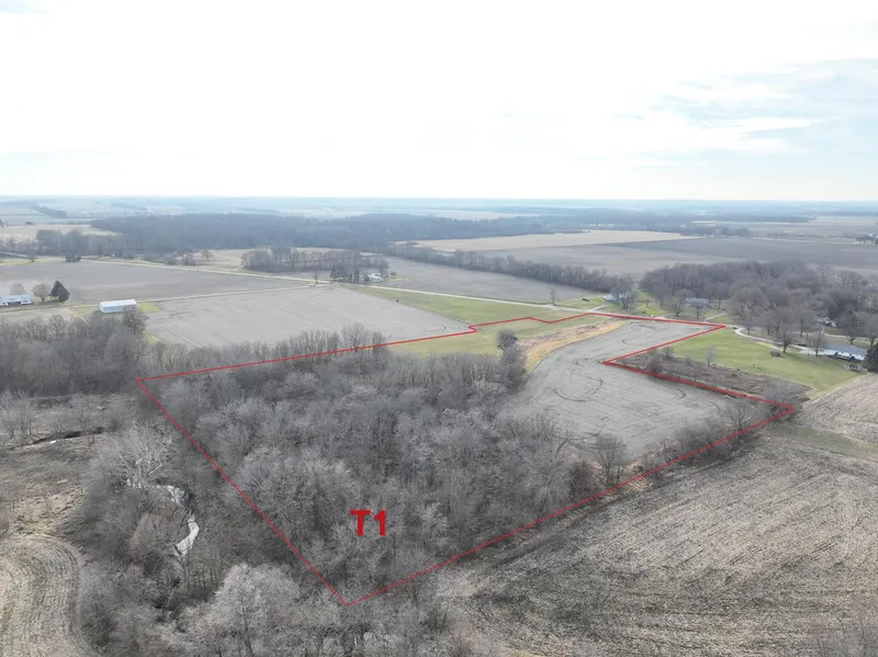 T1: +/- 12.55 Acres; +/- 4.71 tillable acres, +/- 2.04 grass acres, 113 PI, +/- 5.21 acres woods and ditch.