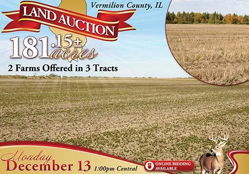 Farm B (Tract 3): Located at the corner of CR 4200N and CR N170 in Section 10 of Butler Township in Vermilion County, IL. Property is located 1 mile west of Rankin, IL along CR 4200N.