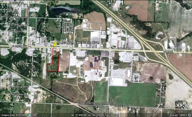 Location, Location, Location...property is located in the city of Nevada, Mo. on East Austin Blvd. just off Hwy. 71. Property has Hwy frontage, electric available, easy access, great area for any type of business. Just minutes away from the Wal-Mart Superstore and Interstate 71. Zoning on this 9 acres m/l offers a great variety of potential business opportunities.