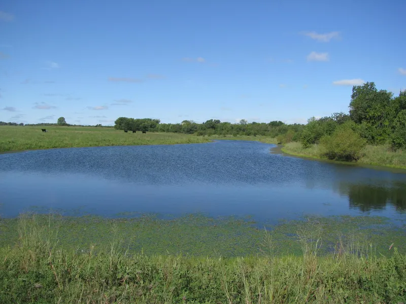 This 405 acres has 1/2 mile of strip pits. A great recreational property, hunting, fishing and boating. Income of the 187 acres now in grass but could be put into crop production. Taxes $618. For outlined aerial and location map, email the listing agent.