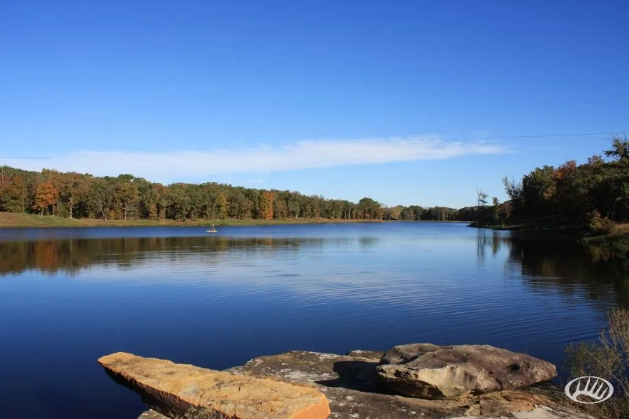 This property is a feast for the eyes; Beautiful private 35 acre lake for fishing, water skiing, waterfowling or quiet walks. The property is heavily timbered with wildlife sightings daily. Expansive four year old 7000 square foot lodge that is a blank slate inside, while a huge quantity of the supplies to complete are there, it can be finished the way you desire. The top floor has a 50'x50' open room as well as a separate 40'x40' area for bedrooms or a kitchen area. The lower floor has a 40'x40' open room as well as multiple bedroom/store rooms. The covered upper deck is 560 square feet. There is also a separate 1200 square foot house, two bedroom, two bath it has a 600 square foot deck as well as a swimming pool and sauna. There is a 40'x75' metal building as well as two 10'x18' metal car ports. The property is fenced and gated for control. There are 18 income producing tillable acres that have been in a rotation of corn and soybeans the last several years. The lake was stocked by the state fishery department in 2001. The path around the lake is over two miles making for a great walk. The many geological formations are beautiful and have to be seen. If you are looking for your own private family get away were you can pursue your desires of watersports, hunting, fishing ,walking or just relaxing without have to fight the crowds this should be your new home.