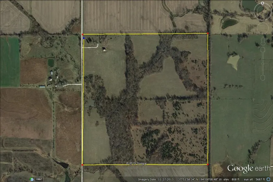 Research Parcel InformationFrom Nevada Mo go East on 54 hiway to Dederick take AA north to Katy Track go west on Katy Track to 2700 Rd. go North on 2700 1/2 Mile Property is on the West side