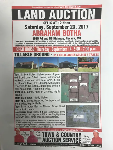 Research Parcel InformationFrom Nevada Mo go South on Int. 49 about 4 miles to BB Exit go east on BB about 2 miles sale site will be on the North side
