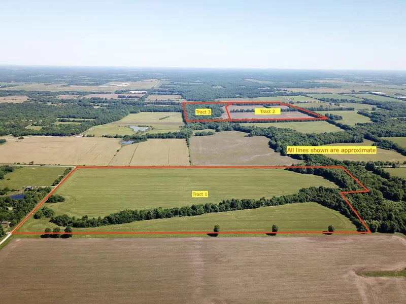 Tract 2: 94 acres with approximately 82 acres of highly productive cropland with soils consisting mostly of Barden, Hepler, and Parsons silt loams. The balance of the land consists of woods.