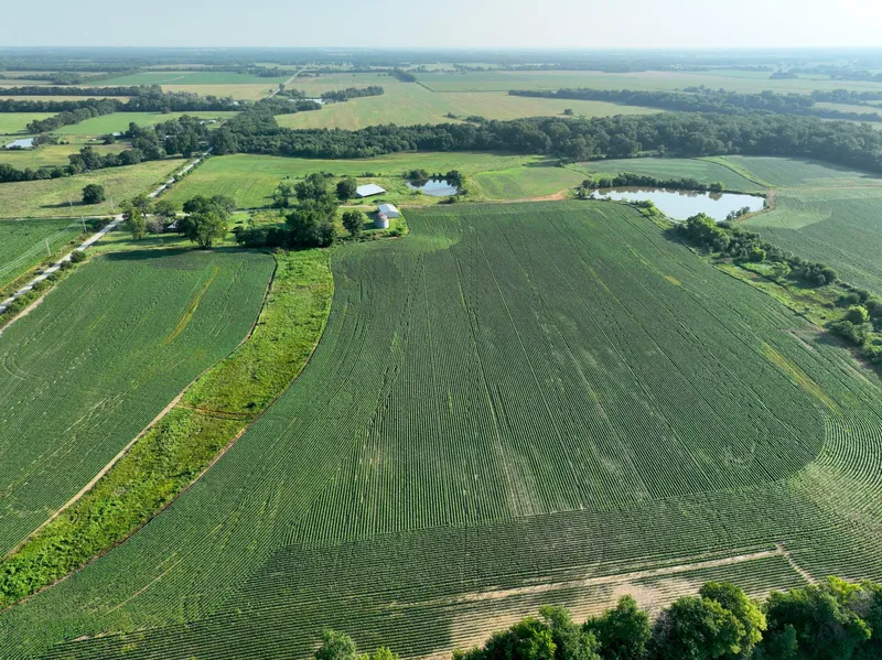 84.5 acres to be determined by survey. This tract features 21.87 acres of tillable land planted in tilled and no-till Soybeans in 2024. It is 100% Class 2 and Class 3 soils with the majority being Hepler silt loam and Barco loam. The balance of the tract is home to 16 acres of mature Pecan trees, pasture, 2 ponds, and native trees. It is also the location of a 5 bedroom/1 bath home, 24 x 20 garage, 80 x 40 barn, an 88 x 62 barn and 2 grain bins. Currently accessible via S 500th Rd.