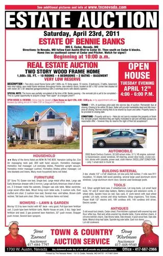 Home may be viewed at open house on April 12th, between 4:00-6:00 p.m. or by appointment with auctioneers. View sale bill for contact information.