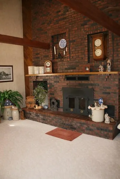 This home has lots of character from the exposed brick, beams, open stair case and so much more. The bayed windows in the kitchen will be a favorite place overlooking mother nature. There are LARGE kitchen with tons of counter space plus numerous cabinets...some roll outs, chef pantry. A Whirlpool smooth top range, built-in range, dishwasher, and refrigerator. The utility room comes with washer and dryer behind closed doors, plus an additional closet and room for a deep freeze - the perfect place to do crafts. The master is on the main floor with a full bath including a jetted tub. There is a half bath between the kitchen and living room and a wood burning fireplace. Upstairs there are two large bedrooms, a full bath, and a walk-in closet. The lower level allows room to grow, 18.9 x 15.5, the perfect place for a rec...