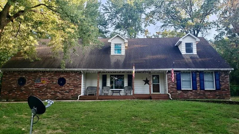 Youll find this beautiful, spacious family home nestled in a quiet, well-kept subdivision just outside the city limits of Nevada, MO. There is no HOA, just a yearly fee for street lights. The entry opens to a beautiful oak staircase leading up to an office area with vaulted ceilings, chandelier, two bedrooms with sky lighting, a full bath, and a Romeo and Juliet balcony. To the left of the staircase is the main living area on the first level. A great brick fireplace graces the living room and is centered between lovely built-in cabinetry. Beyond the living area is the magnificent kitchen and dining room with numerous cabinets, newer countertops, back splash, sink, and faucet. The stove is set off in a vintage brick encasement to top it off! At the west end of the ground level is the master bedroom with an ensuite bath and closet. Youll also find a spacious laundry room and half-bath on t...