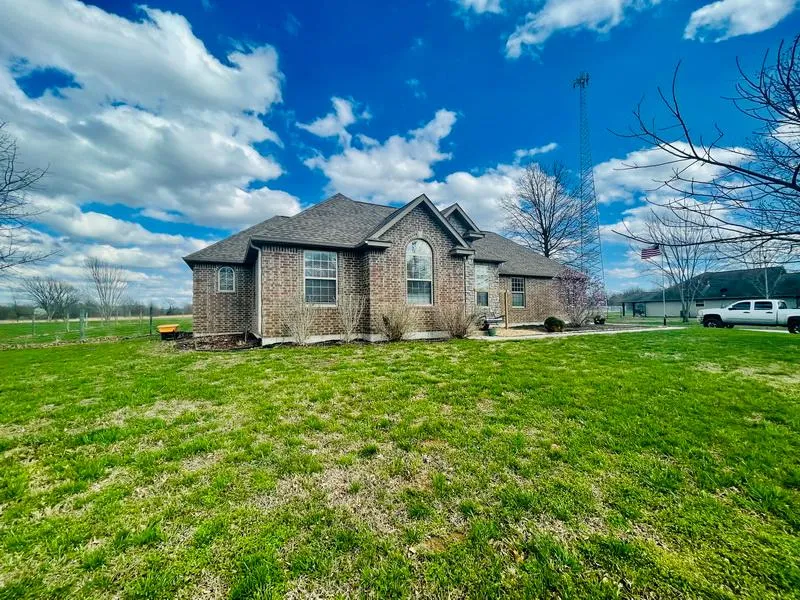 This Stunning Home built in 2008 has both comfort and glamor for any modern taste. A Stone and Brick combo front invite you into warm solid wood floor entry foyer. Natural light floods into the open Kitchen, dining and living room areas which then lead to a welcoming sunroom/office or all occasion room. This allows for expansive entertaining for any occasion. Comfortably spaced rooms with impeccable care throughout the whole property. Tall ceilings. Beautiful lighting, wrought iron stair rails, carpeted stairs. Comfort and care go on down into a well-lit fully finished basement. Multiple options for living down below. Game room, living room, Full bathroom, 2 non conforming bedrooms, and much more. Outside you will find a 30x40 shop, with overhead door, car lift, concrete floor & heated. Backyard fencing allow for pets, and the additional acreage is only partially fenced, but full of options: Garden, orchard, 4H project, A pony or two, a Lama, camel or endless hobbies. Easy access with paved frontage road. Outside city limits, but conveniently close, with city water and sewer. 10' Pond stocked with hybrid bluegill, channel catfish, and fathead minnows.