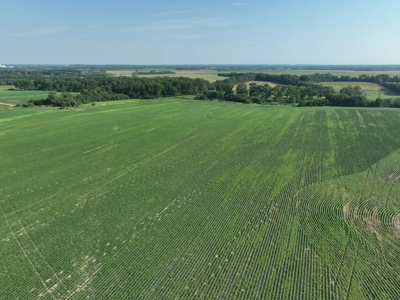117.4 acres to be determined by survey. This tract features 96.41 acres or 82% tillable land planted to soybeans in 2024. It is 100% Class 2 and Class 3 soils with the majority being Barden silt loam and Parsons silt loam. The balance of the tract being timbered drainage draws and ponds. Currently accessible via S 600th Rd.