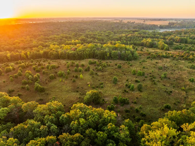 Food, cover, and water; the three components are required by wildlife every day to meet their survival needs. When all three are dispersed and well-distributed across the landscape, wildlife not only survives but can thrive! This remarkable farm in southeastern Vernon County is as close to a guarantee as you can get when it comes to the potential for growing big deer and plenty of wild turkeys. A quick glimpse at the aerial view offers an appreciation of the interspersion of big blocks and narrow fingers of oak woodlands with open fields and ridges covered in native prairie, bluestem meadows, and tillable fields. Flowing through the valleys between ridges, you’ll find several creeks and tributaries, including Walnut Creek, that carry life-sustaining water and provide fertile creek bottom fields rich in a variety of plants and able to grow plenty of nutritious forage.