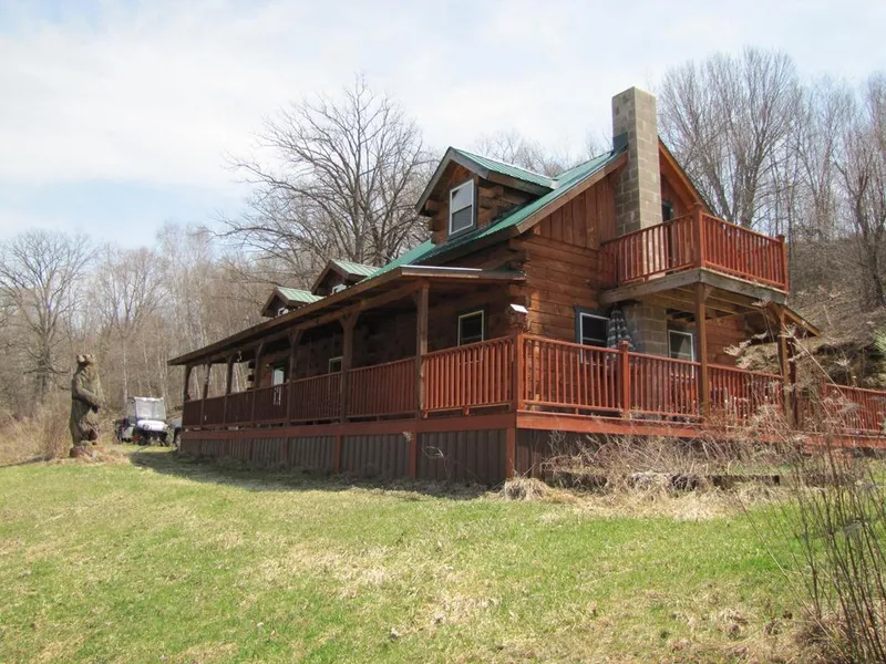 This 86 +/- acre parcel has recently been an organic produce farm but now it awaits your dreams. 23 +/- acres of tillable land are in CRP, 51 acres of woods (in MFL) and a creek in the valley. The 2 bedroom 1 bath full log home on this parcel would be ideal for a second home or a modest primary residence. A large front porch is the perfect place to relax while enjoying the view of the valley. No farm is complete without a barn and from the stone foundation to the metal roof, this one wont disappoint.