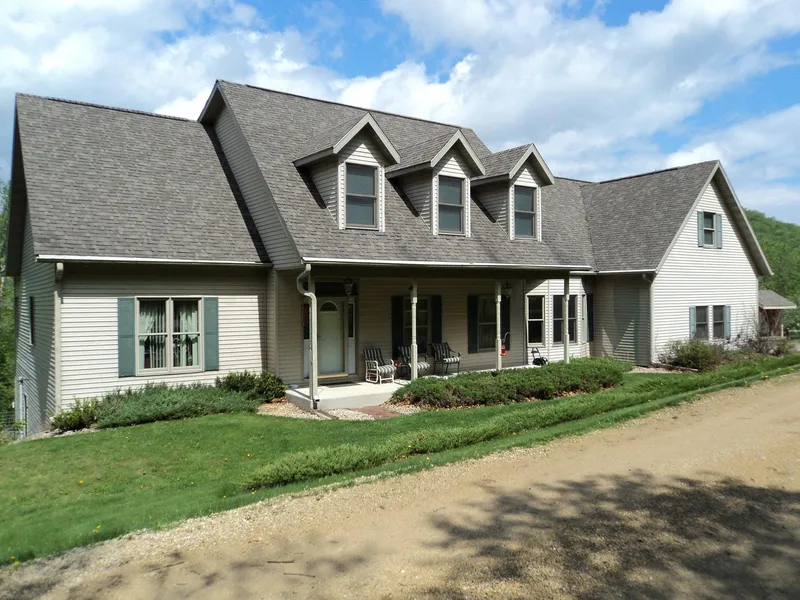 Every so often a really special property comes onto the market. The setting is ideal and the home incorporates some of the finest building materials and designs. This home was built in 2001 and features floors made of marble, granite and oak hardwood. The cabinetry in the kitchen and pantry, and the shelving in the library are made of solid cherry. Each of the three bedrooms has a private full bathroom and walk-in closet. The master bathroom has an American Standard whirlpool tub and a separate shower. The main floor has nine-foot ceilings and along with the upper level, beautiful oak trim stained to match the cherry cabinetry. Amazingly this home, with 3,658 sq. ft. of above grade living space, can be mostly heated by the wood stove at a slab wood cost of approximately $110 per year. The second floor has a 652 sq. ft. unfinished bonus room with a fun secret entrance. The sheet rock is there for the next homeowner to complete the job. This home is well insulated and very energy efficient. The main and upper levels have their own heating zones allowing an owner to better regulate the heating and cooling. The full unfinished walkout basement has high ceilings and adds approximately another 1900 sq. ft. to space. The propane generator is always on call though rarely used, powering about 80 percent of the house in the case of a power outage. The three-season porch overlooks the 8.39 acres which features significant frontage along both sides of the North Fork of the Bad Axe class 1 trout stream. This property has been home to sheep. Much of the fencing is still in place as is the 24 x 16 sheep barn with a mow for storing hay. Elegance, comfort, animal husbandry, recreation are all found here in beautiful Newton Valley. Down the road, but not connected to the property, is Duck Egg County Forest offering 707 acres of public land for hunting, fishing, hiking and horseback riding. Don't wait if you're interested, schedule a private showing today.