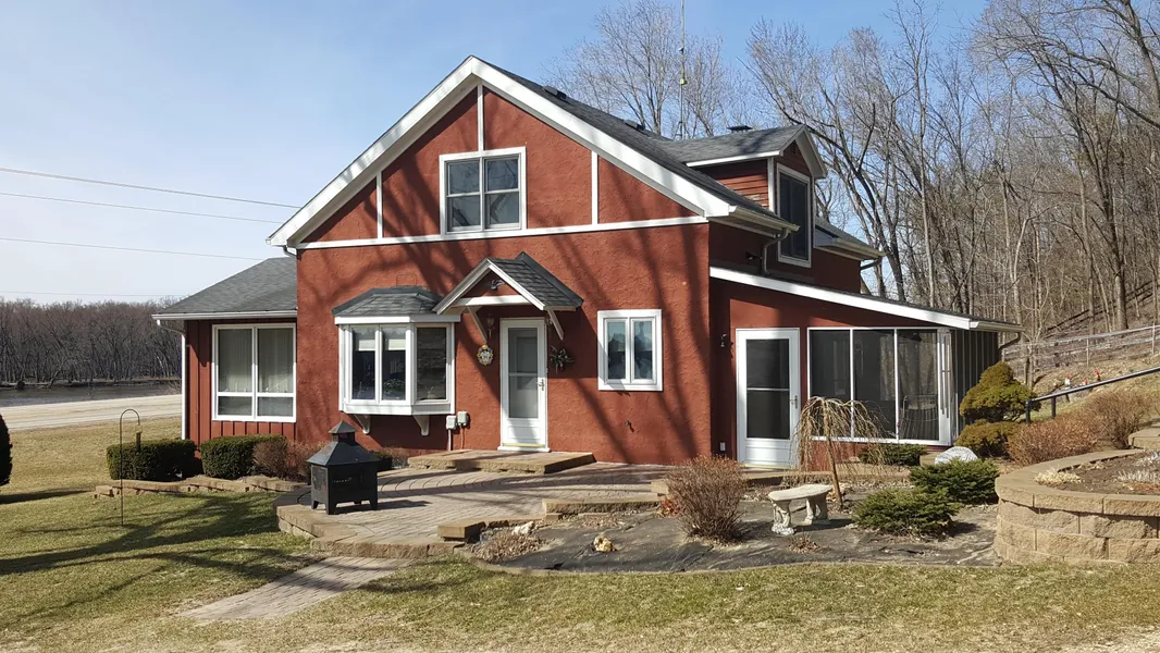 A remodeled 2 bedroom, 2 bath farm home nestled on 40 acres of mature woods and open meadows with a barn, artesian well and hiking/ATV trails winding through the property. Enjoy eye-level views of the main channel of the Mississippi River from this beautiful Southwest Wisconsin acreage.