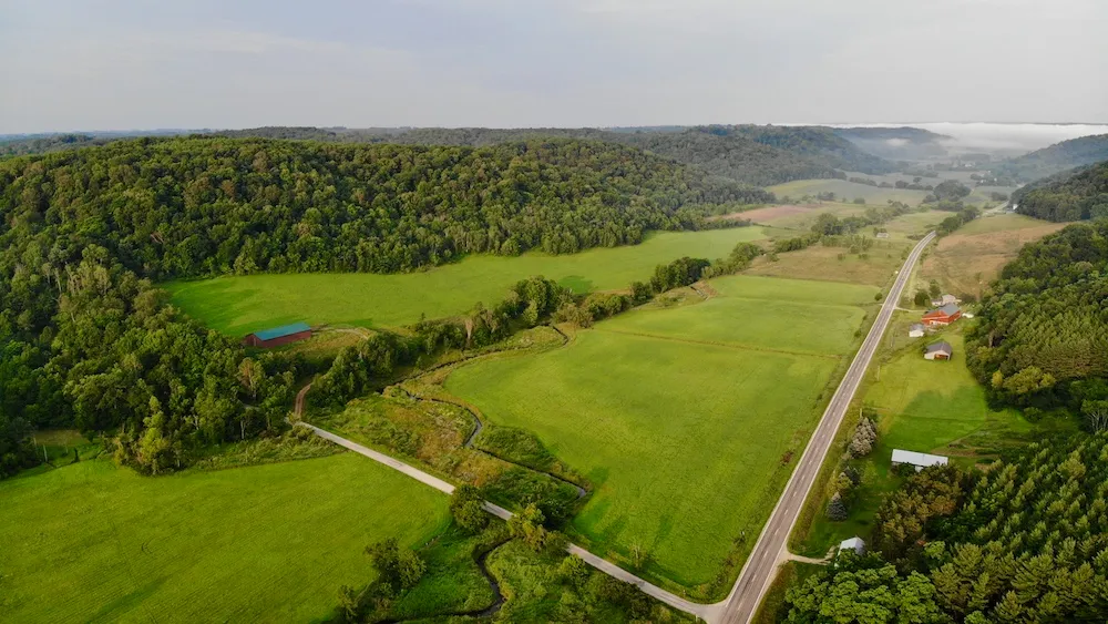 If you’ve been looking for a farm that has a little bit of everything, then you will want to take a look at this property! Located just a few miles East of La Farge, this property gives you the opportunity for row crops, grazing livestock, excellent hunting and fishing, and a place to build your country home! There is a 50’x100’ shed on site that has plenty of space to store all of your equipment you need out on the property. To help provide for the animals you have on the property, approximately 42 acres of open ground have been used to produce certified organic hay and graze cattle. The owners haven’t kept up with their organic certification, but one could get it back if they chose to do so. One could also convert some of this hay ground into row crops for income and to help provide food for wildlife. One additional feature of this property is the surplus of maple trees producing sap to make maple syrup. While photographing the property, I saw several deer and turkey in the timber. In addition to the deer and turkey, North Bear Creek, a Class 2 trout stream running through the property, was absolutely loaded with trout. I couldn’t believe how many sizable trout I saw swimming around. If you enjoy hunting deer and turkey as well as fishing for trout, you are going to absolutely love this property. Give me a call to schedule your private showing!