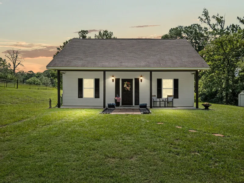 Charming Cottage Retreat on Over an Acre in Anacoco! 137 John Ross Road • Anacoco, LA 71403 Nestled in the peaceful COUNTRYSIDE of Anacoco, this adorable 2-bedroom, 1-bath cottage-style home sits on 1.02 acres surrounded by mature trees—including your very own plum and pear tree! Step onto the inviting FRONT PORCH, recently updated with NEW posts, and admire the custom wood entrance fence that WARMLY WELCOMES you home. A new parking area ensures your vehicle and lawn stay protected. You will fall in love with the CLASSIC white country charm featuring black accents, 9-foot ceilings, and gorgeous RECLAIMED WOOD touches in the kitchen. The heart of the home showcases granite countertops, a white subway tile backsplash, aged bronze faucet with sprayer, and dual lazy