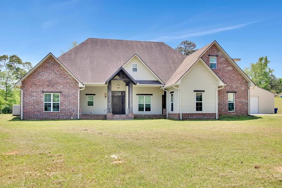 This exquisite 4 BR/3.5 BA home offers over 3,400 sq ft of heated living space and is the perfect blend of luxury, comfort, and function. Set on a serene 5 acres, this thoughtfully designed home is packed with high-end features and top-tier craftsmanship. Step inside and be welcomed by soaring 10 ft ceilings with an impressive 16 ft cathedral ceiling in the living room, accented by a cozy gas fireplace. The gourmet kitchen is a chef's dream, boasting commercial-grade appliances including a gas range with a commercial hood, dual convection ovens, a convection microwave, and beautiful custom cabinetry topped with granite countertops. The spacious owner's suite is a true retreat, featuring a spa-like bath with a tiled walk-in shower and an oversized owner's closet. Upstairs, you'll