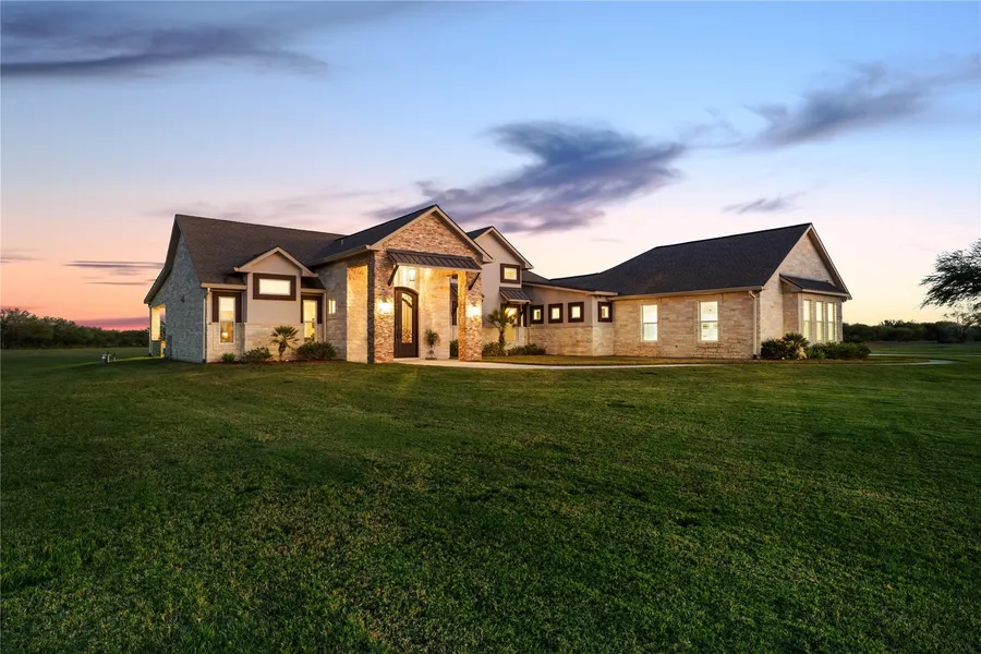 A pristine setting, this 4-bedroom and 3.5 bath home is conveniently located just outside Victoria. Designed for entertaining with comfortable living spaces, this recent constructed home is complemented by designer finishes, soaring ceilings, wine cellar, large windows and beautiful outdoor gathering areas. The island kitchen boasts dual commercial grade Thermador appliances and generous counter and cabinet space. With its soaring beamed ceiling, the Texas great room is anchored by a dramatic gas log fireplace. The covered back patio features a built-in kitchen with fireplace. Three guest bedrooms and the owner's retreat flank the south side of the home. Indulge in the opulent owners retreat with vaulted ceilings, large double walk-in closets, oversized walk-through shower, soaking tub and natural stone surround. A massive 40 x 60 shop is ideal for RVs and can accommodate up to 6 vehicles. Possibility to purchase backing acreage to Sendera Loop with access to Parsons Rd for livestock.