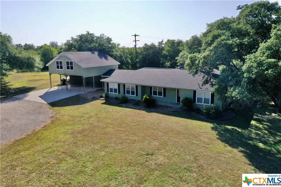 This is a little hidden gem in Inez, Tx. Check out this 4 bed, 2 bath home with a 900 sqft bonus room over the garage sitting in two oak tree filled acres. This home is full of updates and has an open concept. The kitchen has beautiful granite countertops and a large island for entertaining. The primary bedroom has an oversized walk-in closet with a jacuzzi tub and walk-in shower. The primary bedroom also opens up to the back door covered patio. There are multiple storage buildings and carports for your boat and rv. The bonus room above the garage has an unfinished restroom that needs the plumbing to be tied into the water and septic system. There is fresh paint through the house and new carpet. This is a move-in ready house in Industrial School District! Schedule your showing today!