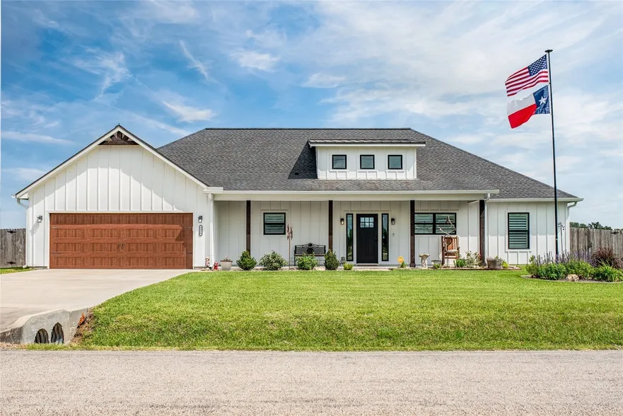 This custom-built ranch-style home combines luxury and functionality with its stunning white board and batten exterior, black-framed dual-pane windows, and elegant wood columns. Inside, you'll find a private office, open-concept split floor plan, and a spacious living room with 13 ceilings and floor-to-ceiling windows overlooking a large covered patio and custom gunite pool. The kitchen features 42 cabinets, granite countertops, walk-in pantry, and dining area. The primary suite boasts dual sinks, a freestanding tub, separate shower, and his-and-hers walk-in closets. Additional highlights include LED lighting, a 22x22 garage with storage, full irrigation, programmable security lights, and a heated/chilled saltwater/chlorine pool with LED ambiance. Fiber internet, privacy fencing, extra gravel drive, and zoning to Industrial ISD complete this exceptional offering. Schedule your private ...