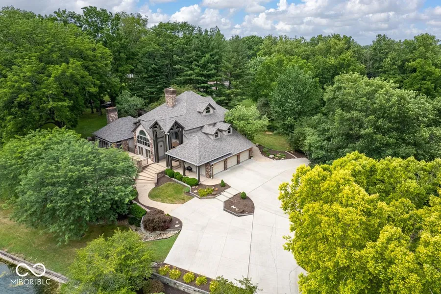 An estate like this is a rare find! Tucked away on 16.5 acres, this home is surrounded by serene woods and stocked lake. Almost 7500 sq. ft, 4 bedrooms, 5.5 bathrooms. Two story great room/dining room with fireplace offers an abundance of elegance. Chefs dream kitchen with center island, lots of cabinets and counter space and gorgeous scenic views. Living room with fireplace is surrounded by tall windows and walkout to grand wrap around back patio. Master bedroom is on the main with en-suite, fireplace, wet bar, huge walk in closet, W/D and veranda to take in the peaceful lake view. Upper level has 3 generous sized bedrooms each with their own en-suite completely updated in 2023. There's also W/D, storage room and wet bar area. Walkout basement has rec area, 2 fireplaces, full bath renovated in 2024, area for office/den and bar area. Barn with 7 stalls, 2 fenced pastures, space for four cars and outdoor equipment. Roof is 3 yrs old, 2 new hvac units, new carpet throughout, new flooring in most areas, fresh paint inside and out. Complete list of updates can be provided to your agent. Don't miss this one of a kind opportunity!