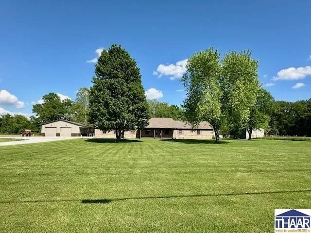 This dream country property is sitting perfectly on 5.27 acres on a paved road w/ broadband internet, established fruit trees, an adorable fenced in chicken yard w/ coop, & tons of newer barns & sheds for all of your cars, toys, & farm/lawn equipment. The main barn is 40x50 w/ 12' ceiling, plumbed for bath, insulated, 10' electric overhead door, w/ a 10' lean to all w/ a concrete floor. Inside boasts a semi-open concept floor plan w/ a large family room w/ floor to ceiling brick fireplace that is a gorgeous focal point, & will be great to cozy up to on chilly spring nights. The kitchen is a well planned design w/ quartz counters & a good sized bar area for family to gather & hang out while you cook. The French doors lead out to a new concrete patio that will handle the largest of gatherings this summer for a BBQ. The large back living room could easily be used as a primary suite/5th BR, but it has a perfect location in the home for a mother-in-law suite or an adult child w/ it's own entrance. Brand new 1 layer roof in 2021. Located in highly desired Riley School District. Bring the chickens, goats, sheep, mini cows, big cows, or whatever other sweet little barnyard animal your heart desires & live the dream country life!