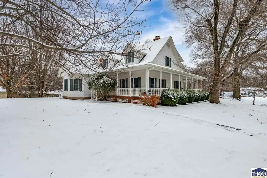 Well-maintained 1896 farmhouse, expanded in 2005, blends historic character with modern comfort. Offers 4 bdrs (or 3 bdrs + main-level studio/fam room) and 2.5 baths. A large double-sided brick fireplace (wood-burning w/natural gas starter) is the cozy centerpiece for both living and dining. Kitchen features pretty painted cabinetry, large center island, and wide-plank hardwood floors with exposed fasteners for authentic farmhouse charm. Primary ensuite includes walk-in shower, jetted soaking tub, and more hardwood floors. All windows replaced w/double-pane vinyl; carpet new in 2022. Spacious main-level laundry; dry basement offers excellent storage/workspace. Attached 2-car garage has tall ceilings. Wraparound porch overlooks 18.21 acres of scenic, fully fenced pasture used for agritourism and petting zoos. Organic farm includes approx. 20,000 sq. ft. of greenhouse-covered tillable grou...