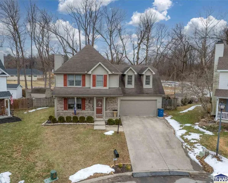 Welcome to this stunning four-bedroom home in the desirable Birch Run neighborhood! This house features 2.5 bathrooms, a large fenced-in yard, and a finished basement perfect for entertaining. Step inside to discover a living room with engineered hardwood floors, a cozy fireplace, and an abundance of natural light that flows seamlessly into the dining room, where you can enjoy beautiful sunrise views of the woods. The kitchen is a dream, offering ample storage and updated appliances, along with a massive window overlooking the back deck and backyard. A convenient half bath is located on the main level. Upstairs, you'll find four generously sized bedrooms with newer carpet and plenty of closet space, including a walk-in closet in the primary suite. The primary bedroom is spacious and features an en suite bathroom with a shower, tub, and dual sinks. Enjoy sunsets from your primary bedroom each evening. The additional three bedrooms share an updated full bath that is both stylish and functional. The finished basement includes a kitchenette for entertaining, additional storage, and a bonus room for all your entertaining needs. The backyard is perfect for entertaining and is conveniently located close to everything. Plus, radon mitigation is in place for your peace of mind. Call today to schedule a viewing!